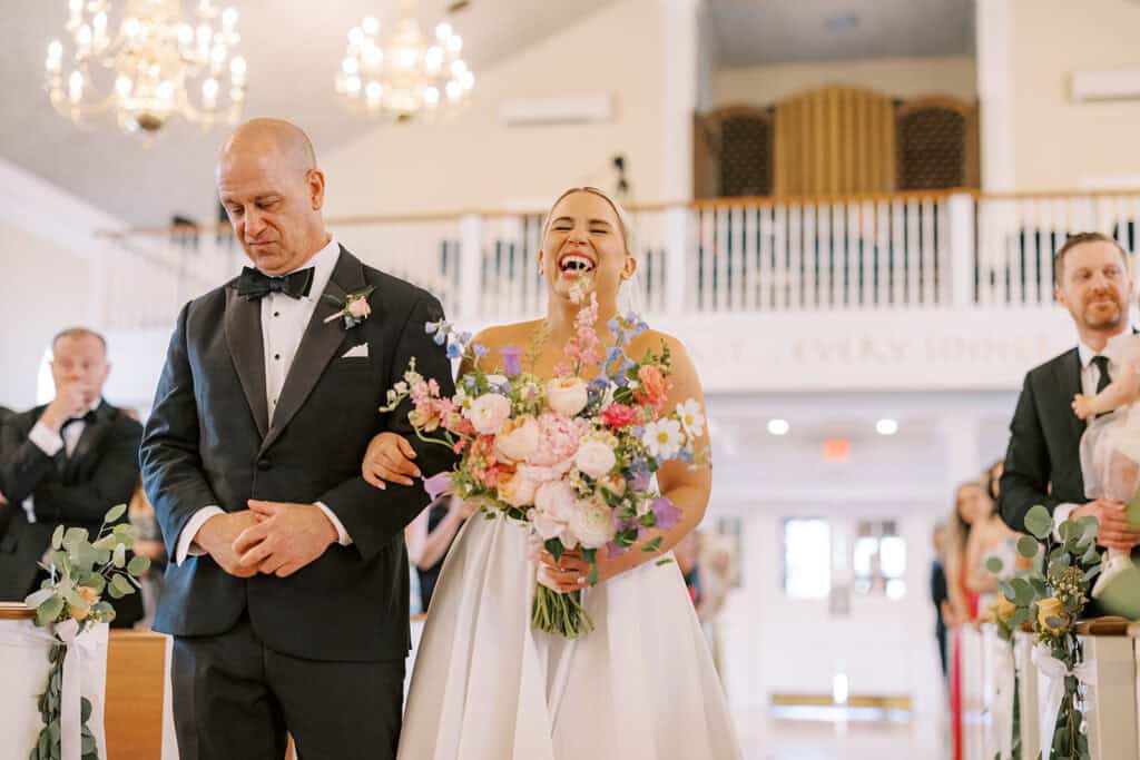 Brenna and Fran were married at Our Mother of Good Counsel Chapel at Malvern Preparatory School, a location deeply connected to Fran’s family and personal history.