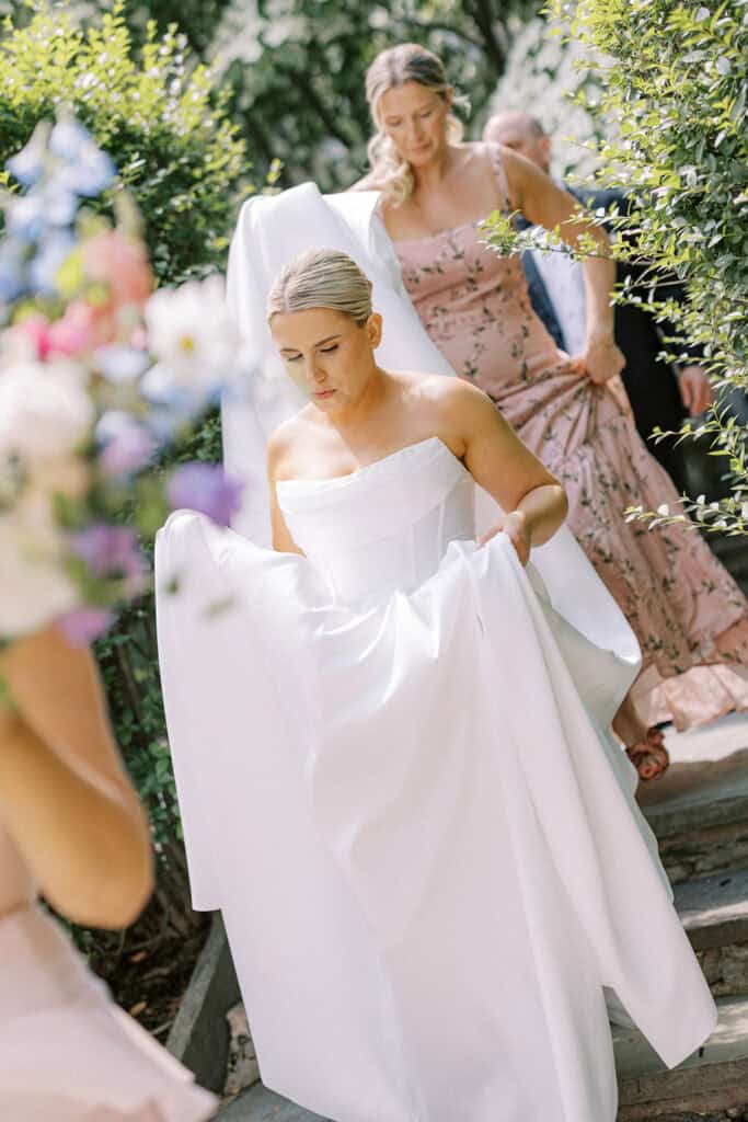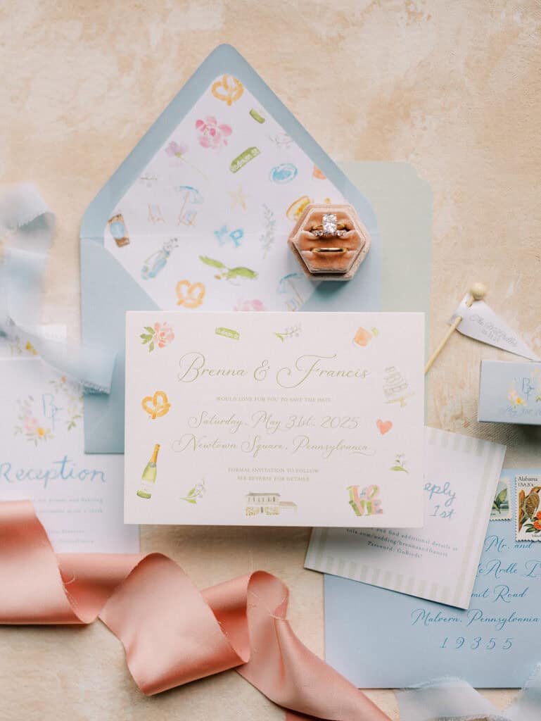 Brenna and Francis’s late May wedding wasn’t rushed or overstated. Their wedding weekend was simply full in the best way. From rehearsal dinner coverage the night before to a Catholic ceremony rooted in family history, their weekend of celebration unfolded with beautiful intention. The highlight was their reception at The Ivy at Ellis Preserve, Finley Catering’s newest venue in Newtown Square, Pennsylvania.