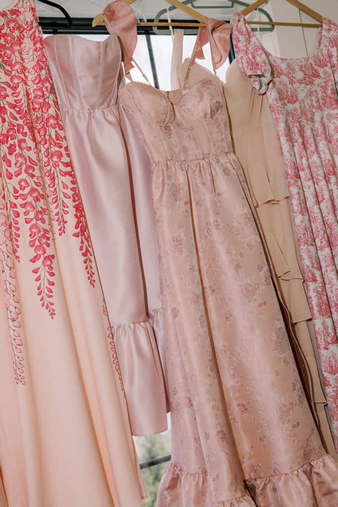 The bridesmaids wore shades of blush and pink, intentionally mixed with different patterns and textures that produced a layered, garden-inspired look. Against The Ivy’s bright walls and clean lines, the color palette felt elevated but still playful — a reflection of Brenna herself.